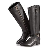 ELINA IN BLACK-9 - Tory Burch riding boots are phenomenal. Covered in a pebble grain black leather, a signature emblem in gold is attached to a matching black leather band. Zips on the sides. See Details >>FEATURED ELINA IN BLACK-9